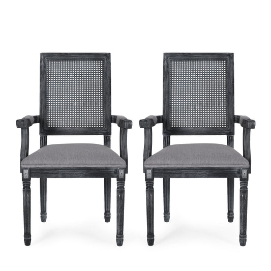 Elegant French Country Style Dining Chair With Cane Backrest - Dark Gray
