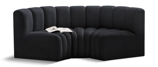 Arc - Velvet 3 Piece Modular Straight Sofa - Black