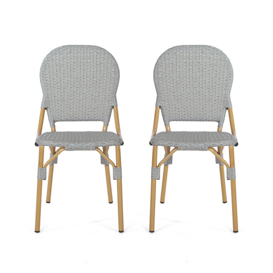 Outdoor Rattan And Aluminum Armless French Bistro Chairs (Set of 2) - Dark Gray