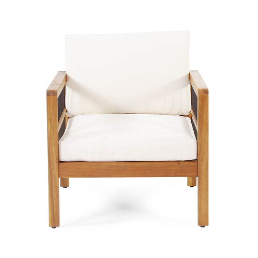 Outdoor Acacia Wood Club Chairs, 2 Pieces Set - Natural Stained / White