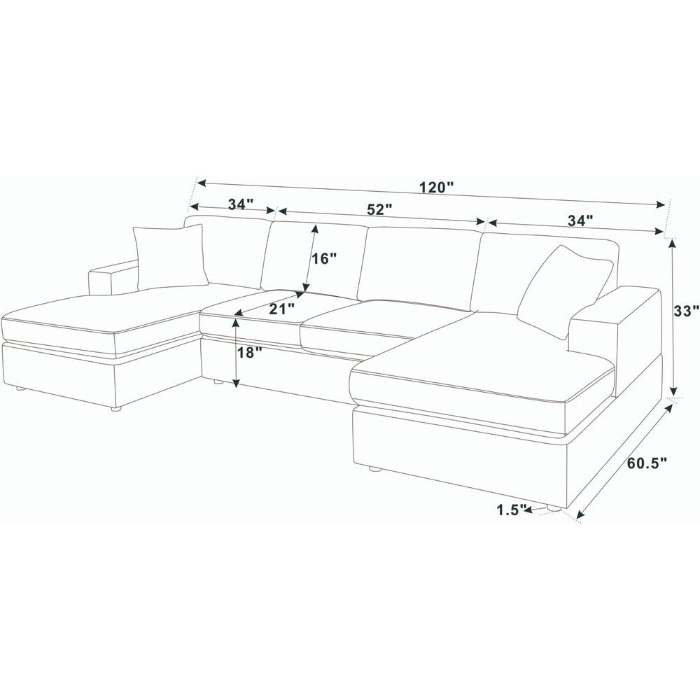 3 Piece Corduroy Double Chaise Sectional Sofa - Cream 60.5"W x 120.0"D x 33.0"H - 199.0 lb