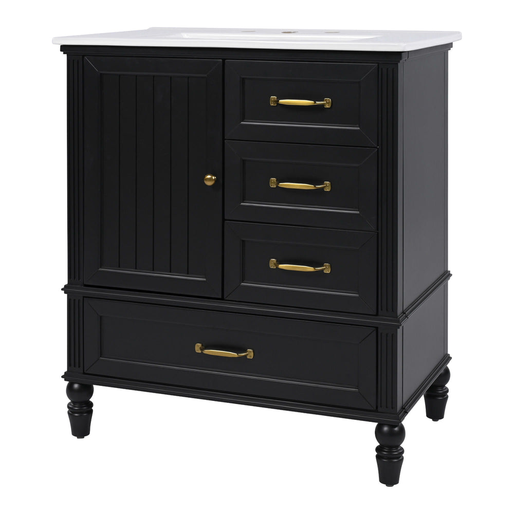 30" Bathroom Vanity With Sink, Cabinet With Door & 3 Drawers - Black 30.0"W x 18.5"D x 34.4"H - 105.82 lb