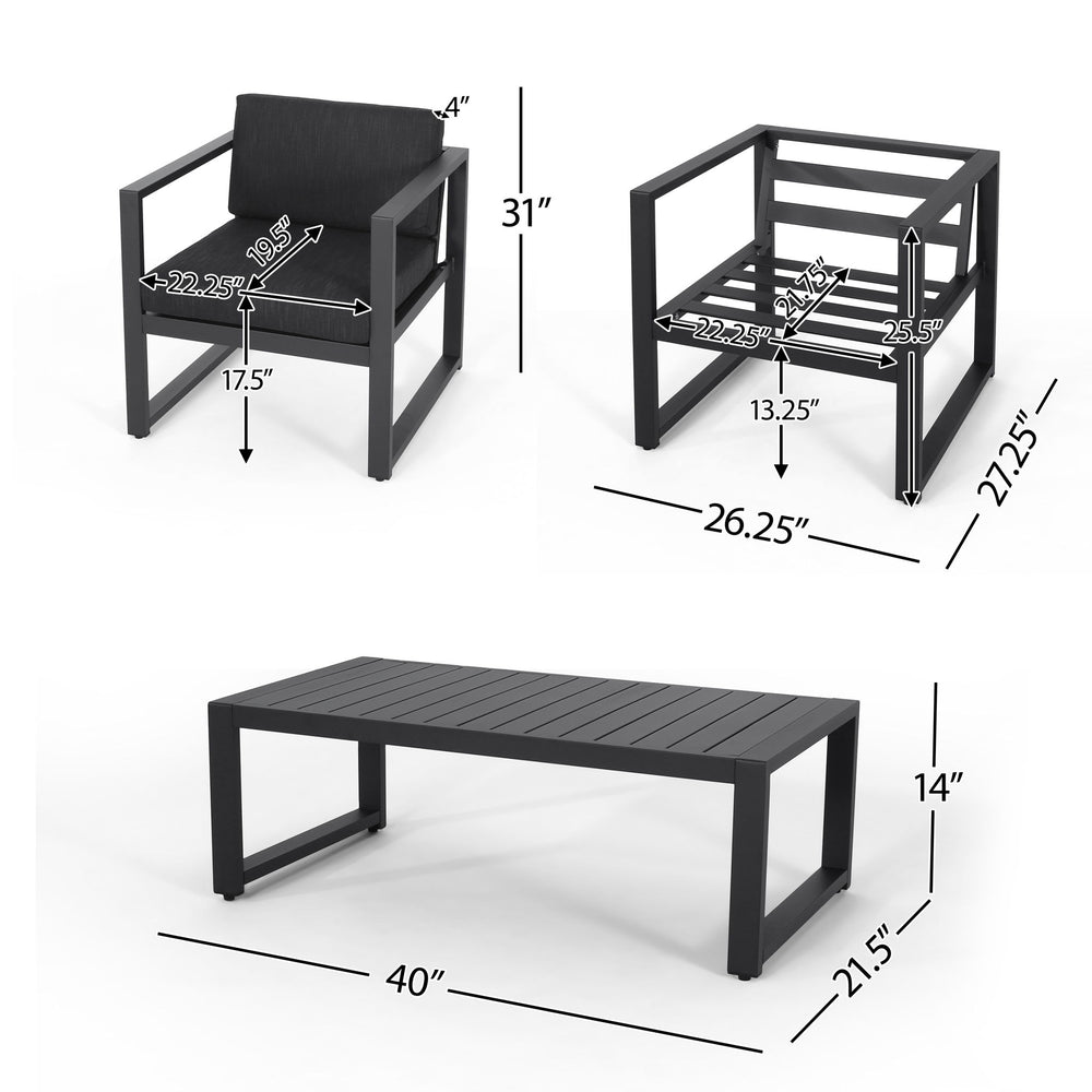 4 Piece Outdoor Chair Set With Weather Resistant Cushion - Dark Gray 48.5"W x 27.25"D x 25.5"H - 70.33 lb