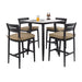 5 Pieces Outdoor Patio Bar Set, Rounded Square Table & 4 Bar Stools - Ember Black / Linen Sesame 35.4"W x 35.4"D x 41.7"H