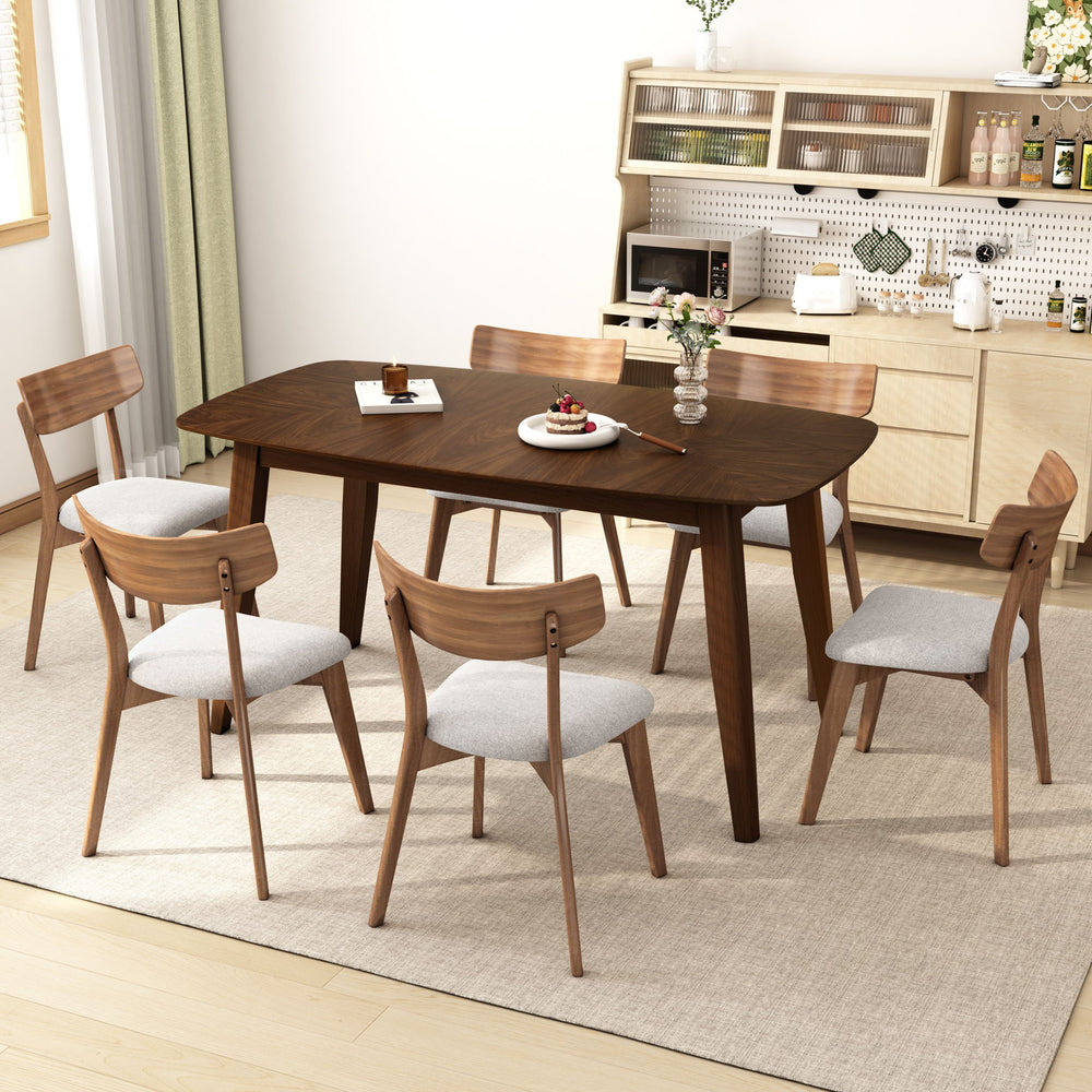 7 Piece Mid - Century Dining Set With Upholstered Dining Chairs, Dining Table