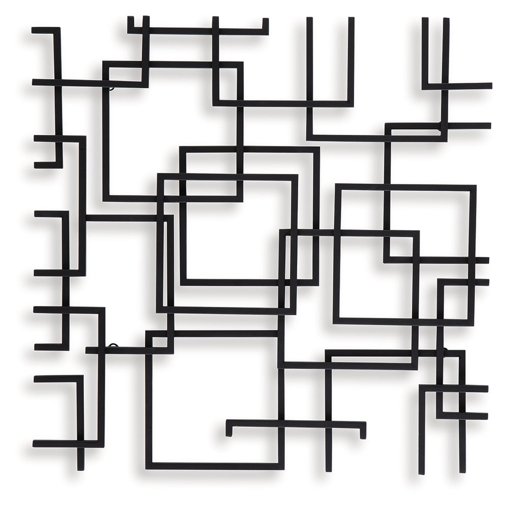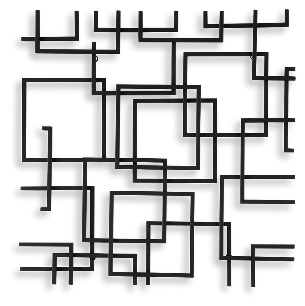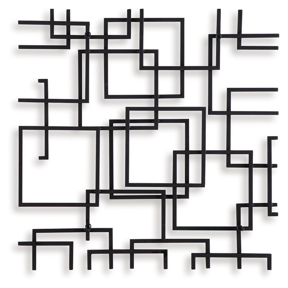 Intriguing with an intricate metal design, this wall sculpture is sure to add an artistic note to your modern interior. Its abstract style incorporates squares overlapping with fragmented lines in a black finish, for a look that’s simply amazing. A hidden bracket allows you to hang the wall decor four ways to suit your space.
