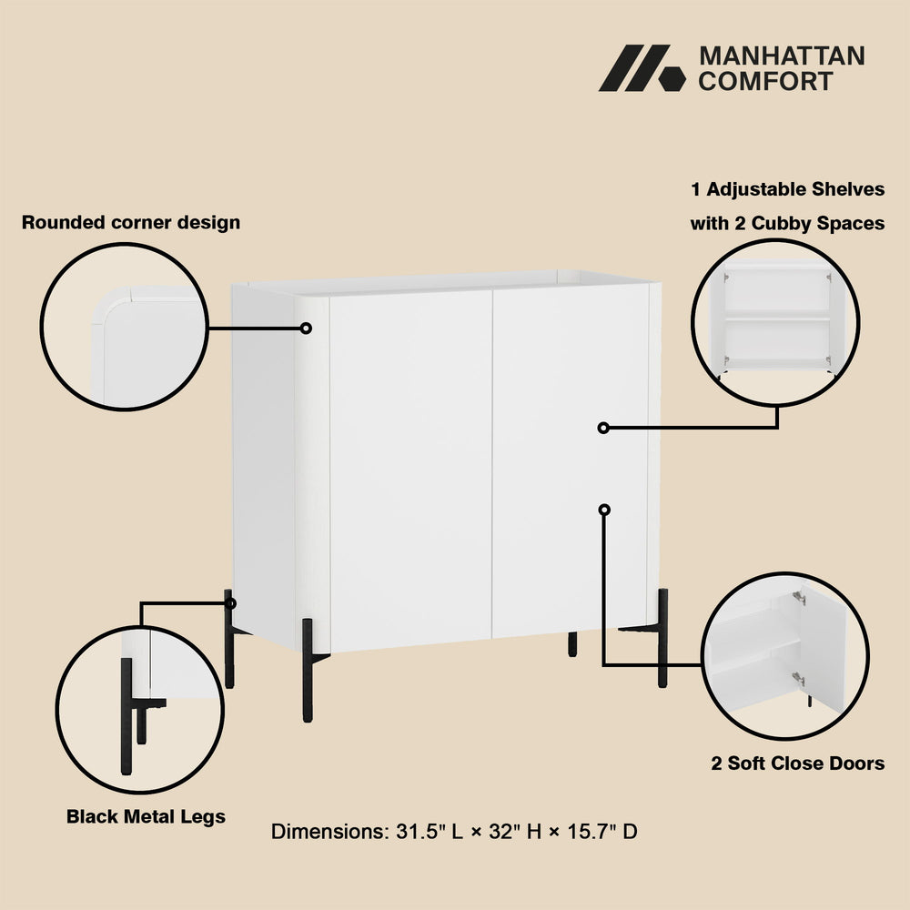 Abbey - Accent Cabinet With Soft Close Doors And Rounded Edges - White 31.5"W x 15.7"D x 32.0"H - 62.0 lb