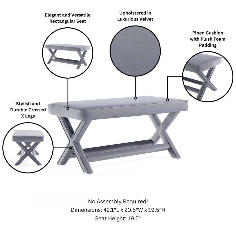 Abigail - Accent Bench With X Crossed Legs - Gray 42.12"W x 20.47"D x 19.48"H - 32.0 lb