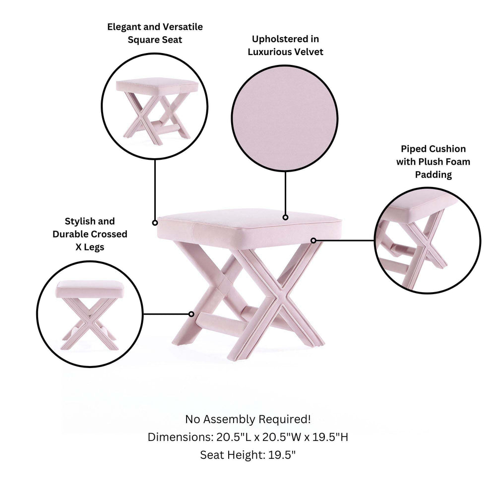 Abigail - Accent Bench With X Crossed Legs - Pink 42.12"W x 20.47"D x 19.48"H - 32.0 lb