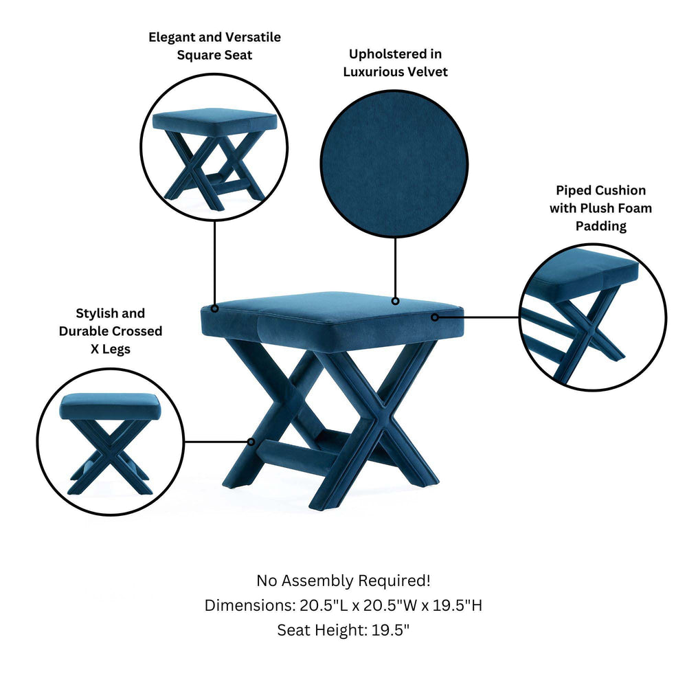 Abigail - Accent Bench With X Crossed Legs - Blue 42.12"W x 20.47"D x 19.48"H - 32.0 lb