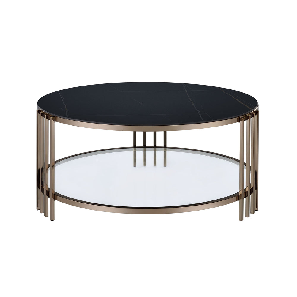 Abisha - Sintered Stone Top & Champagne Round Coffee Table - Black 35.0"W x 35.0"D x 16.0"H - 53.0 lb