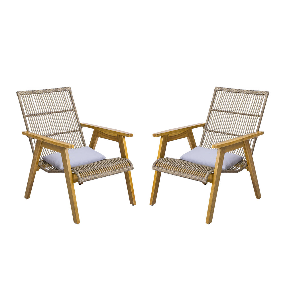 Material Composition: Crafted with a blend of Acacia wood and wicker, these chairs offer natural warmth and modern durability, perfect for stylish outdoor lounging.