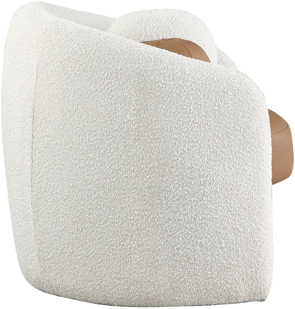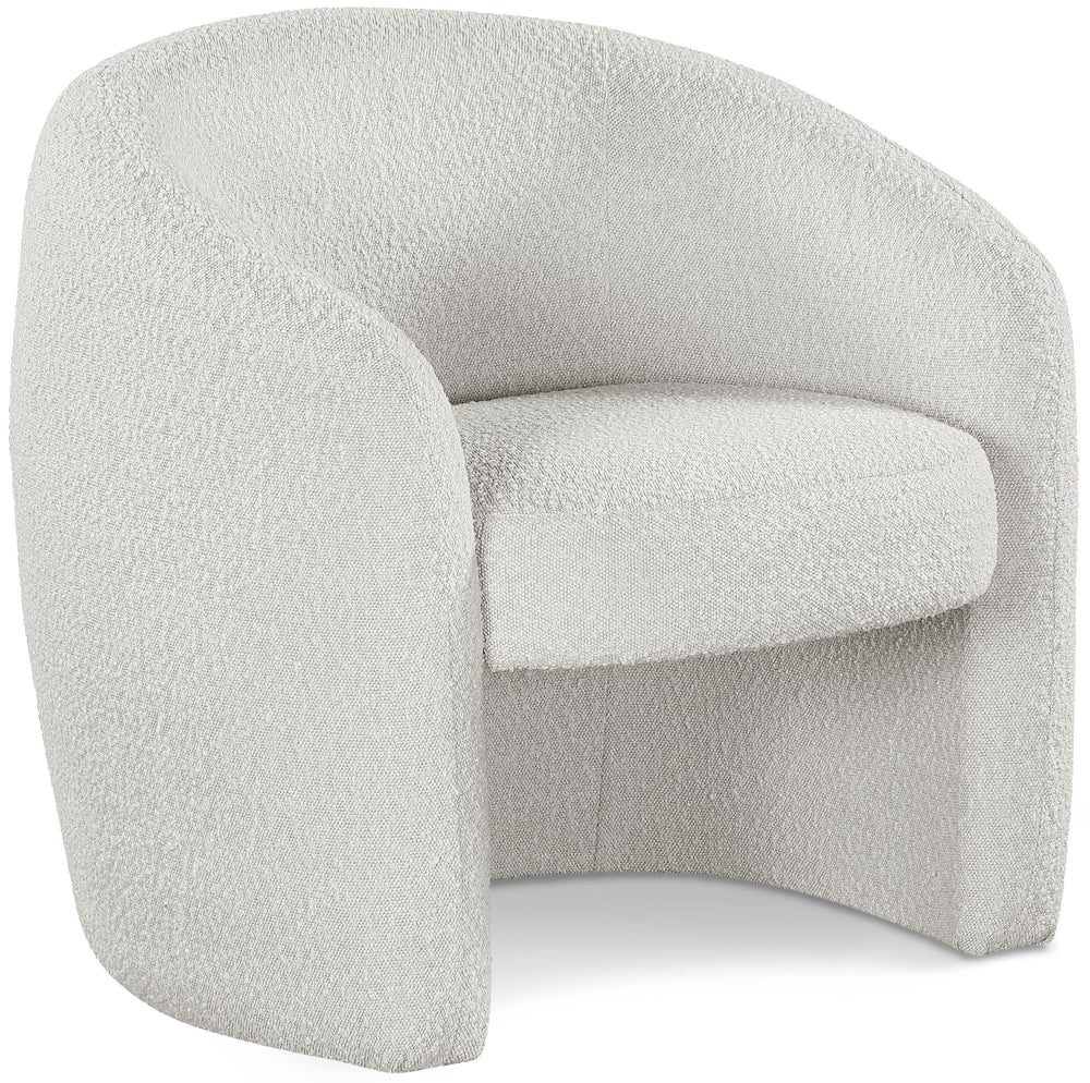 Bring a comfy yet unexpected element to your room with this Acadia boucle fabric accent chair. This handsome accent chair offers plush seating to pamper you in lavish comfort while you relax and unwind. The rich boucle fabric is soft to the touch, giving the chair an inviting feel. A rounded back and minimalist design components make this chair a must-own piece for a contemporary space.