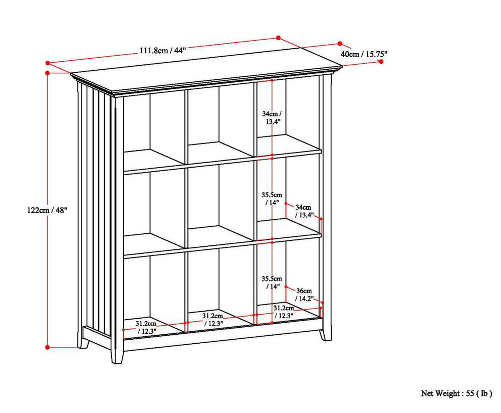 Acadian - 9 Cube Bookcase And Storage Unit - Brunette Brown 44.0"W x 15.75"D x 48.0"H - 61.7 lb