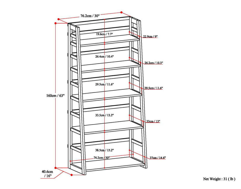 Acadian - Ladder Shelf Bookcase - Black 30.0"W x 15.9"D x 63.0"H - 33.1 lb