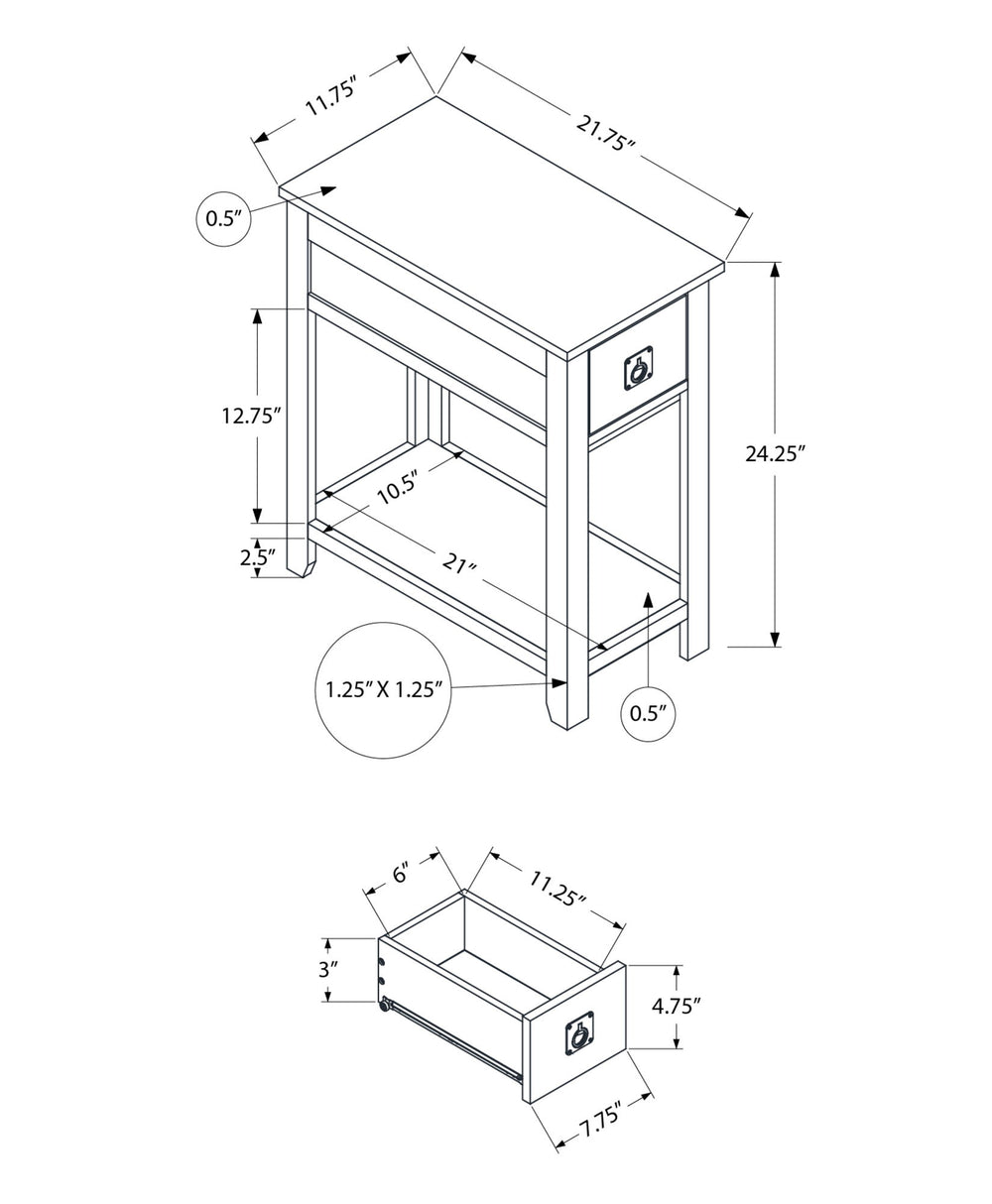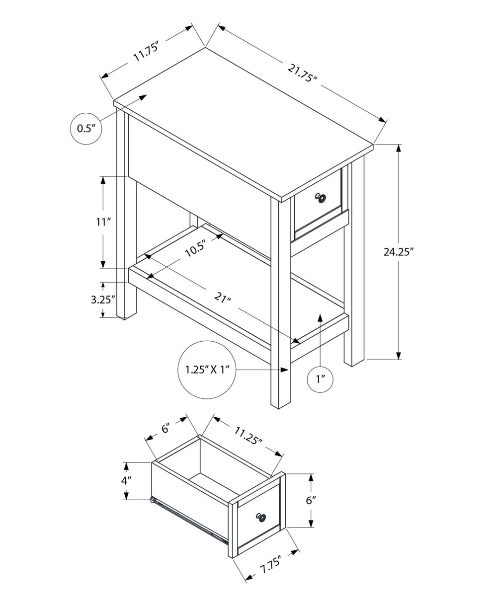 Accent End Table, Narrow, Storage Drawer, Transitional - Espresso 11.75"W x 21.75"D x 24.25"H - 18.0 lb