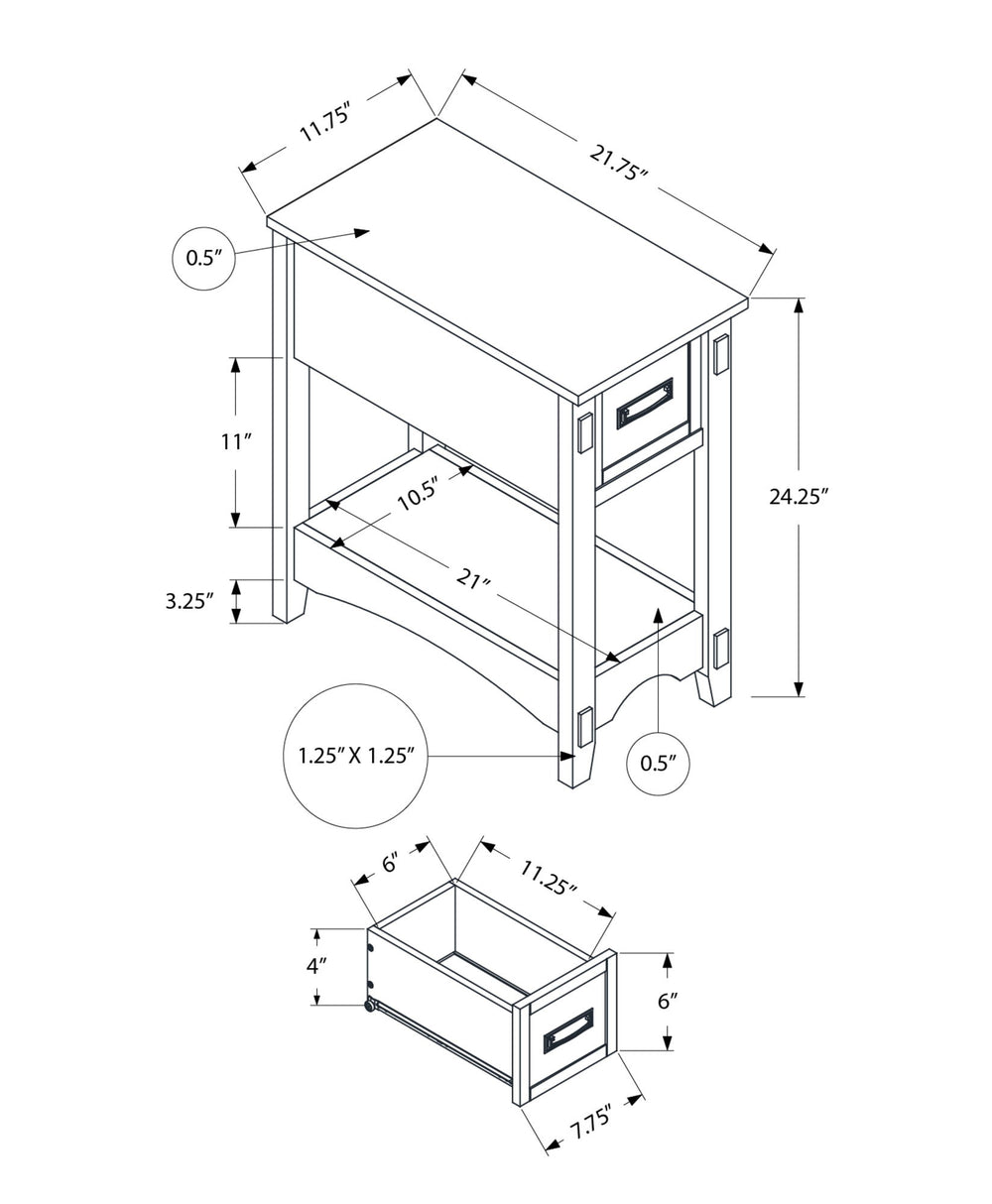 Accent End Table, 2 Tier, Narrow, Storage Drawer, Transitional - Walnut 11.75"W x 21.75"D x 24.25"H - 20.0 lb