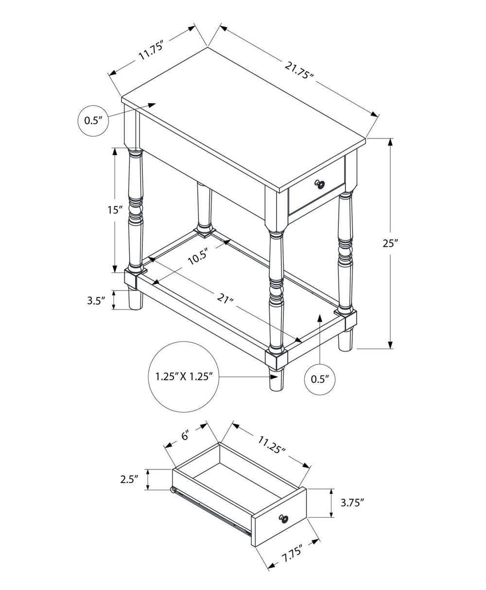 Accent End Table, 2 Tier, Storage Drawer, Traditional - Espresso 11.75"W x 21.75"D x 25.0"H - 16.0 lb