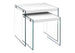 Design and Style: This set of 2 square nesting tables features a contemporary design that complements modern living spaces. The tables boast a sleek look with their tops and sturdy clear tempered glass base.
