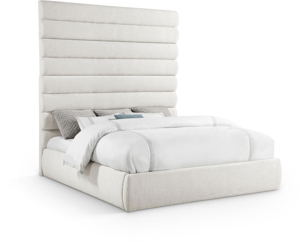 Adam - Linen Fabric Queen Bed With 89" Headboard - Cream 68.0"W x 90.5"D x 89.0"H - 282.0 lb