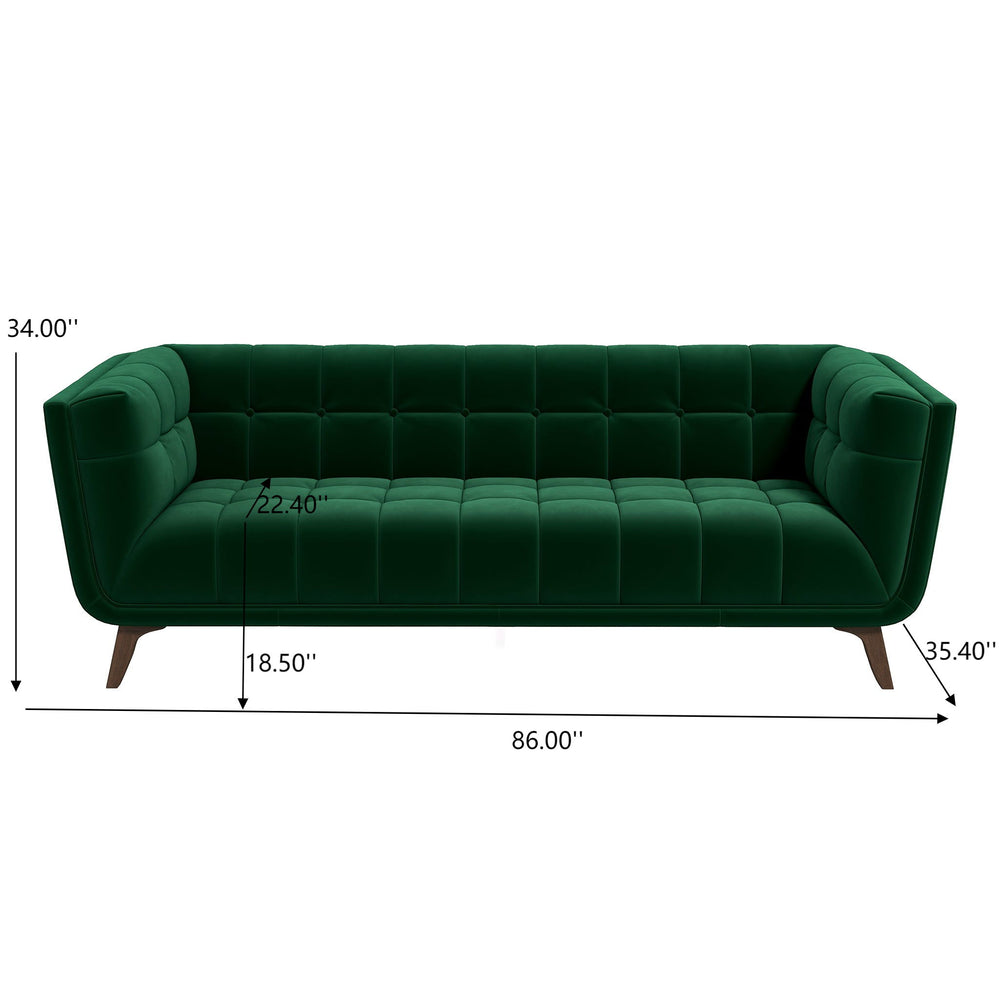Addison - Large Velvet Sofa - Dark Green / Green 35.0"W x 86.0"D x 31.0"H - 125.1 lb
