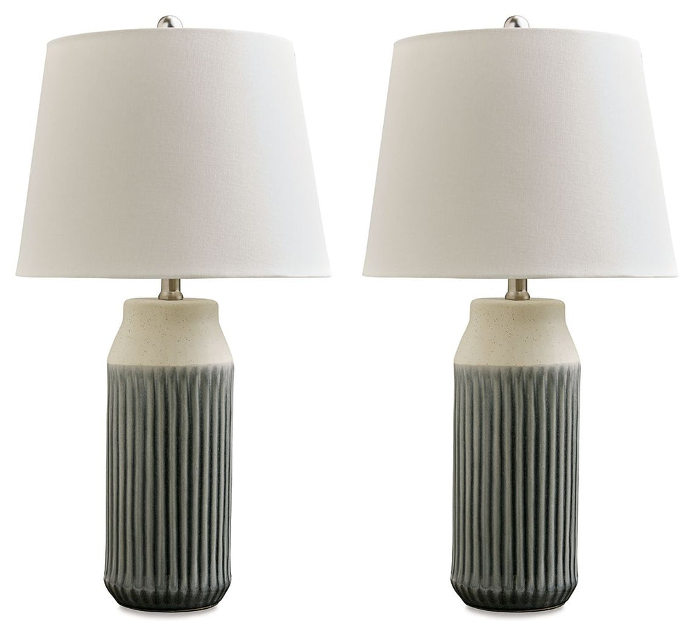 Afener - Ceramic Table Lamp (Set of 2) - Blue / Beige 13.38"W x 13.38"D x 26.0"H - 13.0 lb