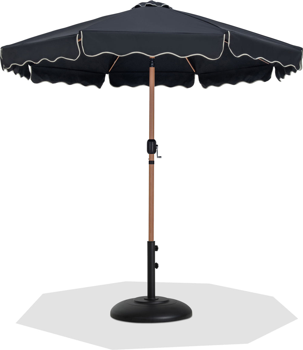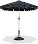 Escape from the sun's rays when you're basking beneath this Amalfi fabric and teak aluminum patio umbrella with matte black base set. This umbrella and stand is an ideal option for adding shade to any area of your deck or patio. The aluminum pole weathers the elements with ease and is finished in teak for a resort-inspired look. The umbrella's fabric is water and color-fade-resistant, ensuring lasting beauty in your outdoor space.