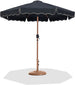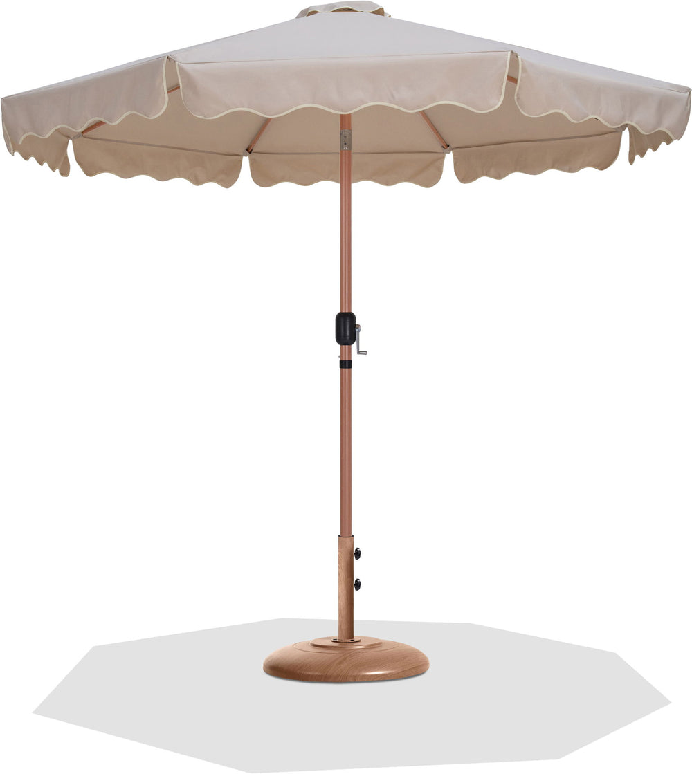 Escape from the sun's rays when you're basking beneath this Amalfi fabric and teak aluminum patio umbrella with base set. This umbrella and stand is an ideal option for adding shade to any area of your deck or patio. The aluminum pole weathers the elements with ease and is finished in teak for a resort-inspired look. The umbrella's fabric is water and color-fade-resistant, ensuring lasting beauty in your outdoor space.
