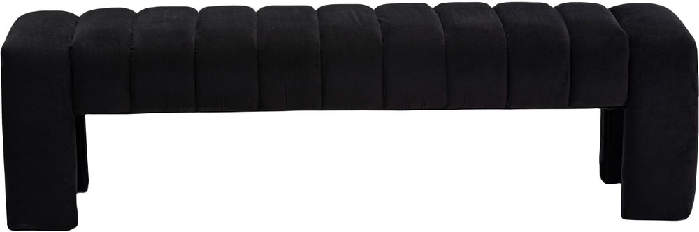 Make a grand statement in your living space with the luxurious Andaz Bench. Crafted with rich velvet, this bench features deep channel tufting that adds a touch of elegance and sophistication to any room. The strong and durable frame is crafted from solid wood, ensuring a stable and robust foundation for any use.With its plush seating and stunning design, the Andaz Bench is the perfect addition to any home looking to elevate their decor.