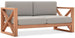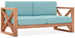 Bring home this Anguilla teak outdoor loveseat to complete the look of your outdoor entertaining area. This resort like loveseat is stylish and comfortable, making it perfect for entertaining or peacefully relaxing in the comfort of nature. Made from teak with a natural finish and water resistant fabric, this loveseat is resistant to rot and pests, so it weathers the outdoors with ease. Pair the loveseat with more Anguilla items for a casual and serene look outside.