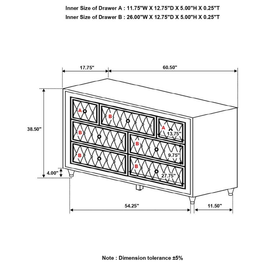 Antonella - 7-Drawer Upholstered Dresser - Ivory And Camel 60.5"W x 17.75"D x 38.5"H - 180.81 lb