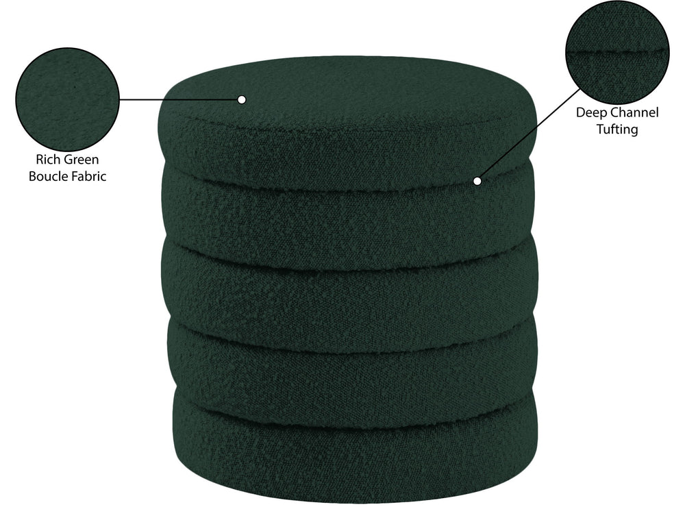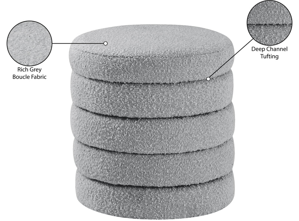 Liven up your living space with this Aphia boucle fabric ottoman/stool from Meridian Furniture. Featuring rich boucle fabric upholstery, this ottoman offers softness to the touch and style to the eye. Deep channel tufting gives the appearance of multiple layers stacked together, making it a contemporary piece perfect for any modern home. Pair this ottoman with a matching sofa, or use it as a stool to provide extra seating when you have visitors.