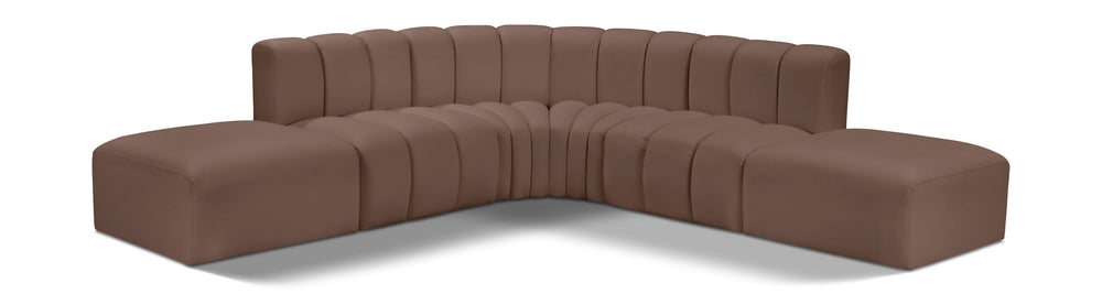 Arc - Faux Leather 6 Piece Corner Modular Sofa - Brown 146.0"W x 76.0"D x 30.0"H - 225.8 lb