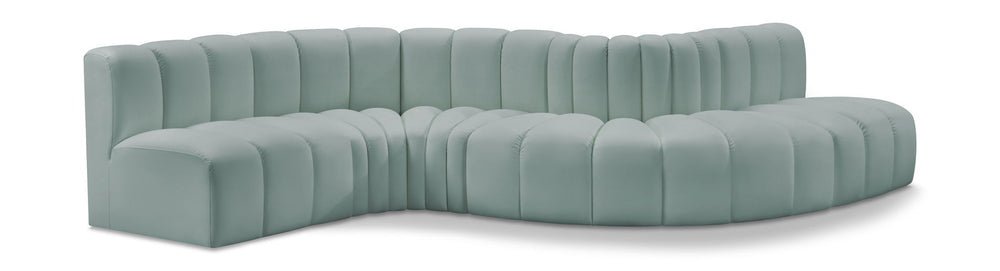 Arc - Faux Leather 6 Piece Curved Modular Sofa - Mint Green 145.0"W x 53.0"D x 30.0"H - 237.7 lb
