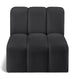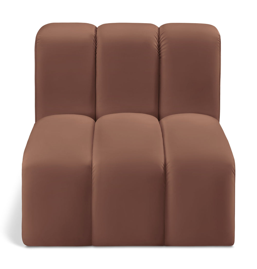 Unleash modern opulence with the Arc Vegan Leather Straight Chair. Crafted for the modern connoisseur, this chair injects an air of refined luxury into any space. Its sleek silhouette, upholstered in supple vegan leather, exudes timeless sophistication while the deep channel tufting adds textural intrigue, further elevating the chair's visual appeal. The modular design makes it a versatile chameleon, effortlessly adapting to your evolving needs and preferences. Whether you envision it gracing a chic living room corner, basking in the glow of a bedroom window, or adding a touch of drama to a home office, the Arc seamlessly complements your unique interior aesthetic.