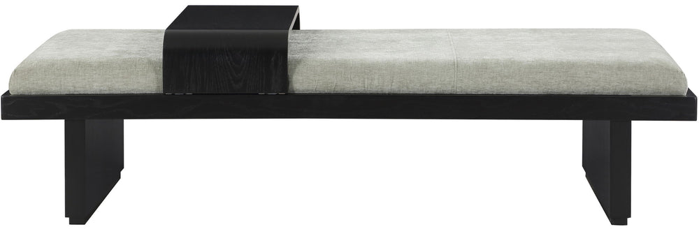 Bring home this versatile Arlington chenille fabric bench, a fusion of comfort and functionality and form meets function. Upholstered in soft chenille fabric that feels great against the skin and is easy to care for, this cozy, luxurious bench has a solid wood base with a rich black finish for sturdiness, durability, and timeless appeal. A moveable sliding wooden tray on this mid-century modern bench offers both convenience and versatility for your space.