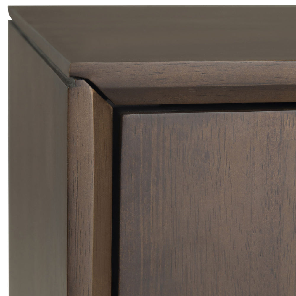 Hand-finished wood with a Walnut Brown stain and a protective NC lacquer to accentuate and highlight the grain and the uniqueness of each piece of furniture