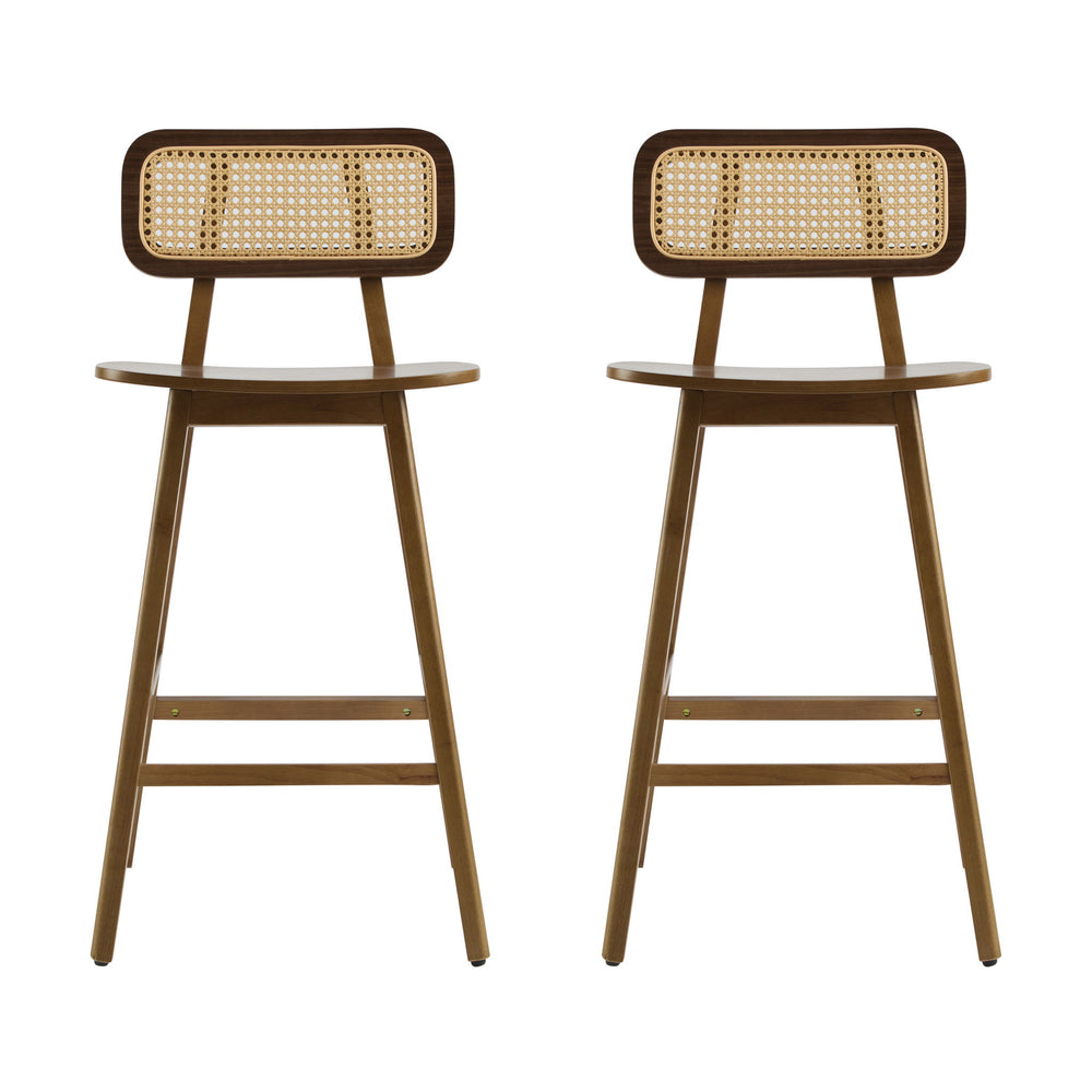 Bari - Indoor Wood Barstool (Set of 2) With And Rattan Backrest - Natural 18.0"W x 20.75"D x 36.25"H - 11.55 lb