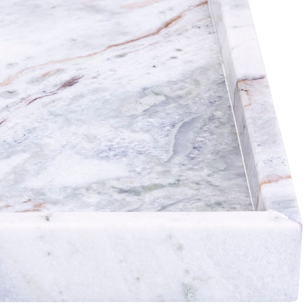 Capri marble brings depth and refinement to the Barletta square tray, a sculptural tabletop accent with sharp edges and timeless charm. Each tray features its own distinct veining, making every piece naturally one-of-a-kind.