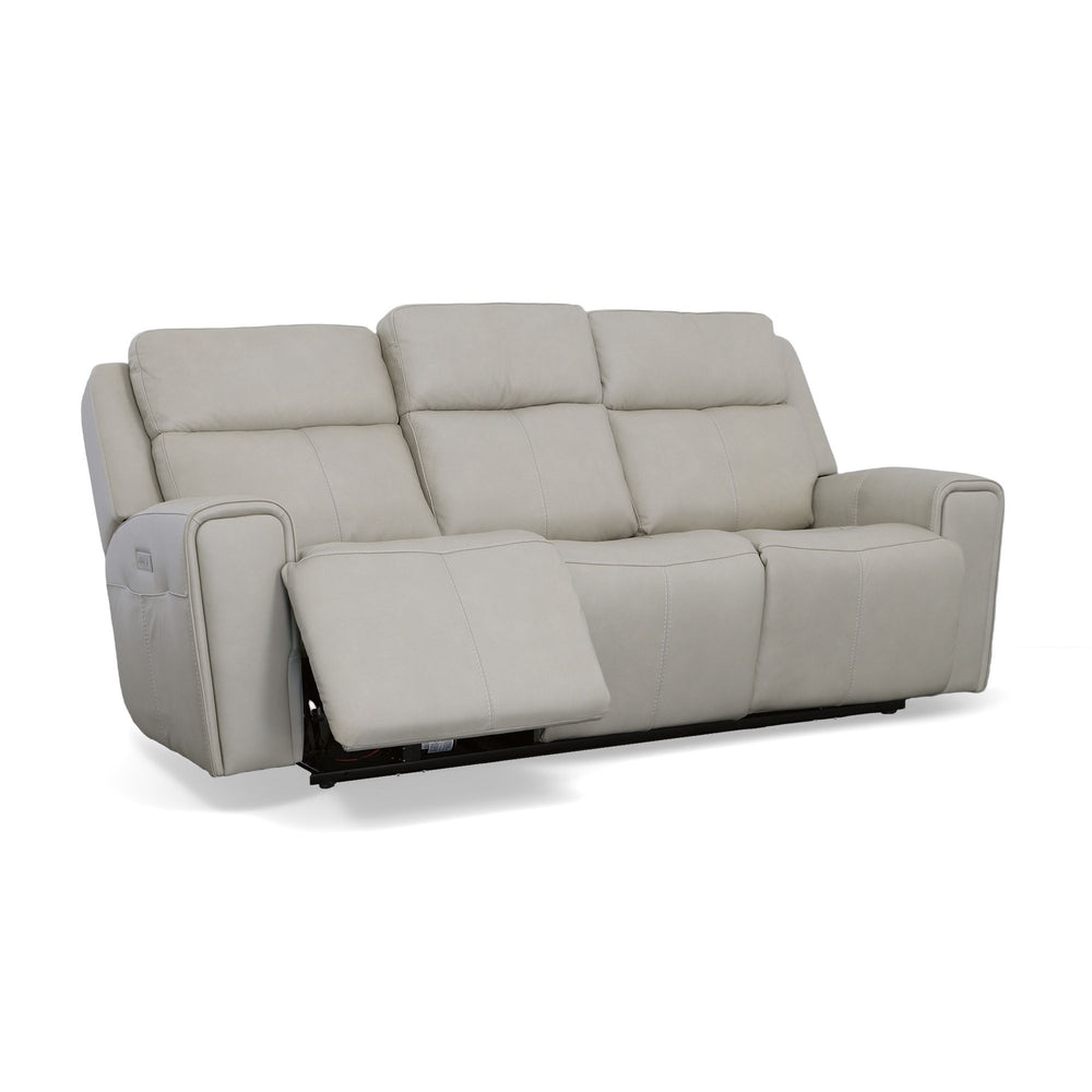 Make your living room the place to be with the comfortable and spacious Barnett power reclining sofa with power headrests and power lumbar. The whole family can relax together and enjoy a feeling of weightlessness with the loveseat’s Zero Gravity recline technology. Easy-to-access power controls on both sides of the sofa allow sitters to independently adjust the recline, headrests and lumbar to find the right level of support for their bodies and moods. Conveniently charge devices without ever needing to get up with a USB port in the power control, and keep remotes close by with handy side pockets. Enjoy ergonomic design details, including generously scaled, contoured seats and waterfall chaise pads that take pressure off the legs and back. Wide track arms with durable top-stitching and attractive welt trim will make this reclining sofa a stylish centerpiece in your home. Upholstered in our premium top-grain leather, this sofa will look good for years to come.