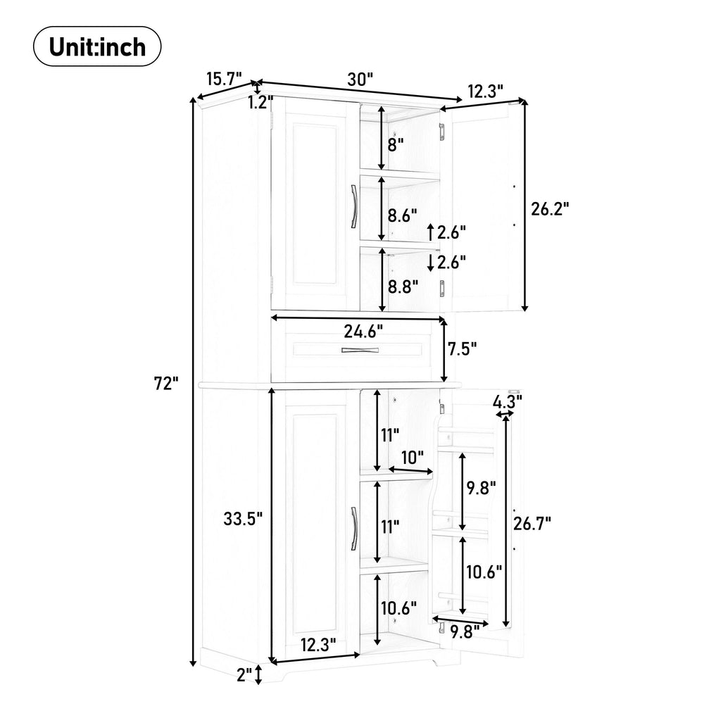 Bathroom Storage Cabinet With Multi Functional Storage Space, Drawer With Slide Rails, Adjustable Shelf - White 30.0"W x 15.7"D x 72.0"H - 114.7 lb