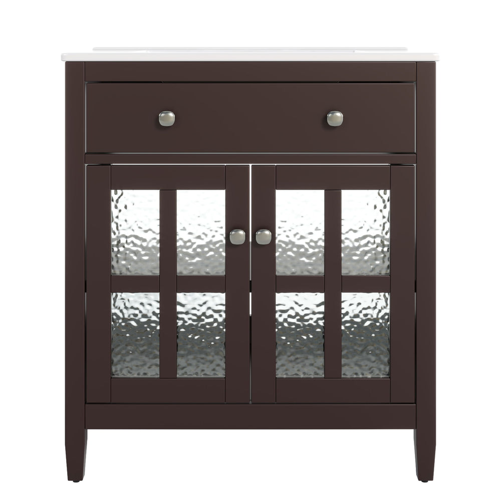 Bathroom Vanity With Sink, Adjustable Shelf & Tip Out Tray - Dark Brown 30.0"W x 18.43"D x 34.05"H - 83.77 lb