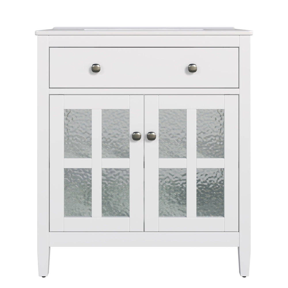 Bathroom Vanity With Sink, Adjustable Shelf & Tip Out Tray - White 30.0"W x 18.43"D x 34.05"H - 83.77 lb