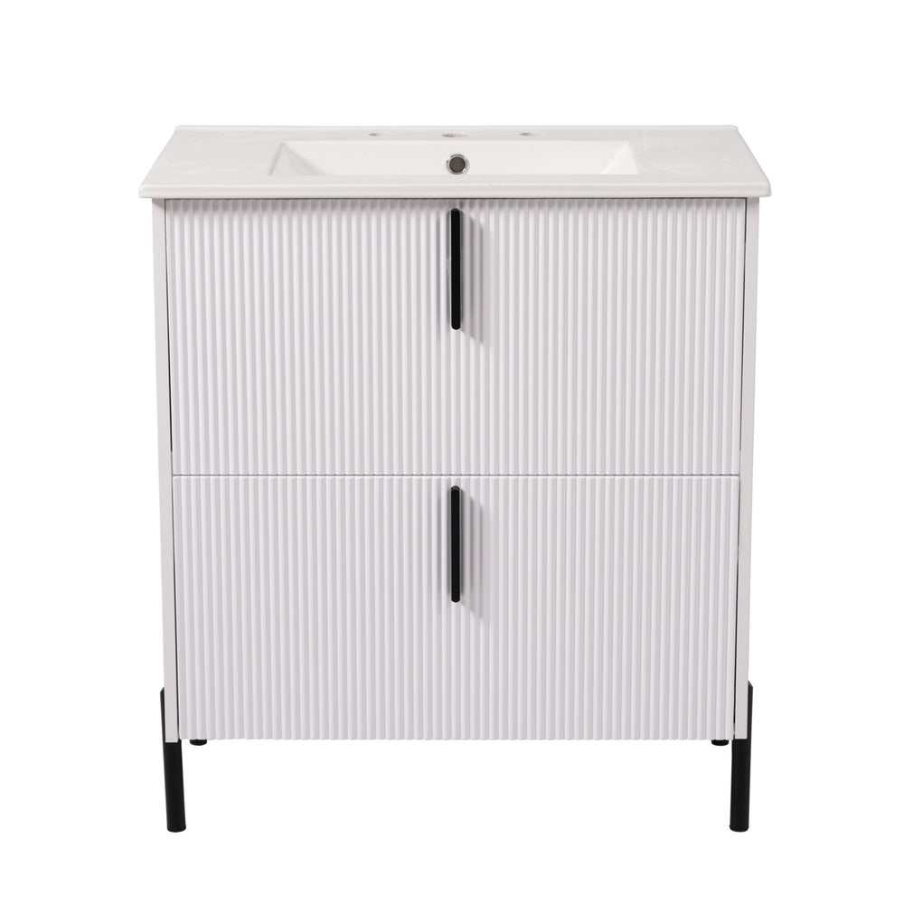 Fluted Bathroom Vanity & Sink, Full Extension Soft Close Drawers - White 30.0"W x 18.0"D x 34.0"H - 95.68 lb