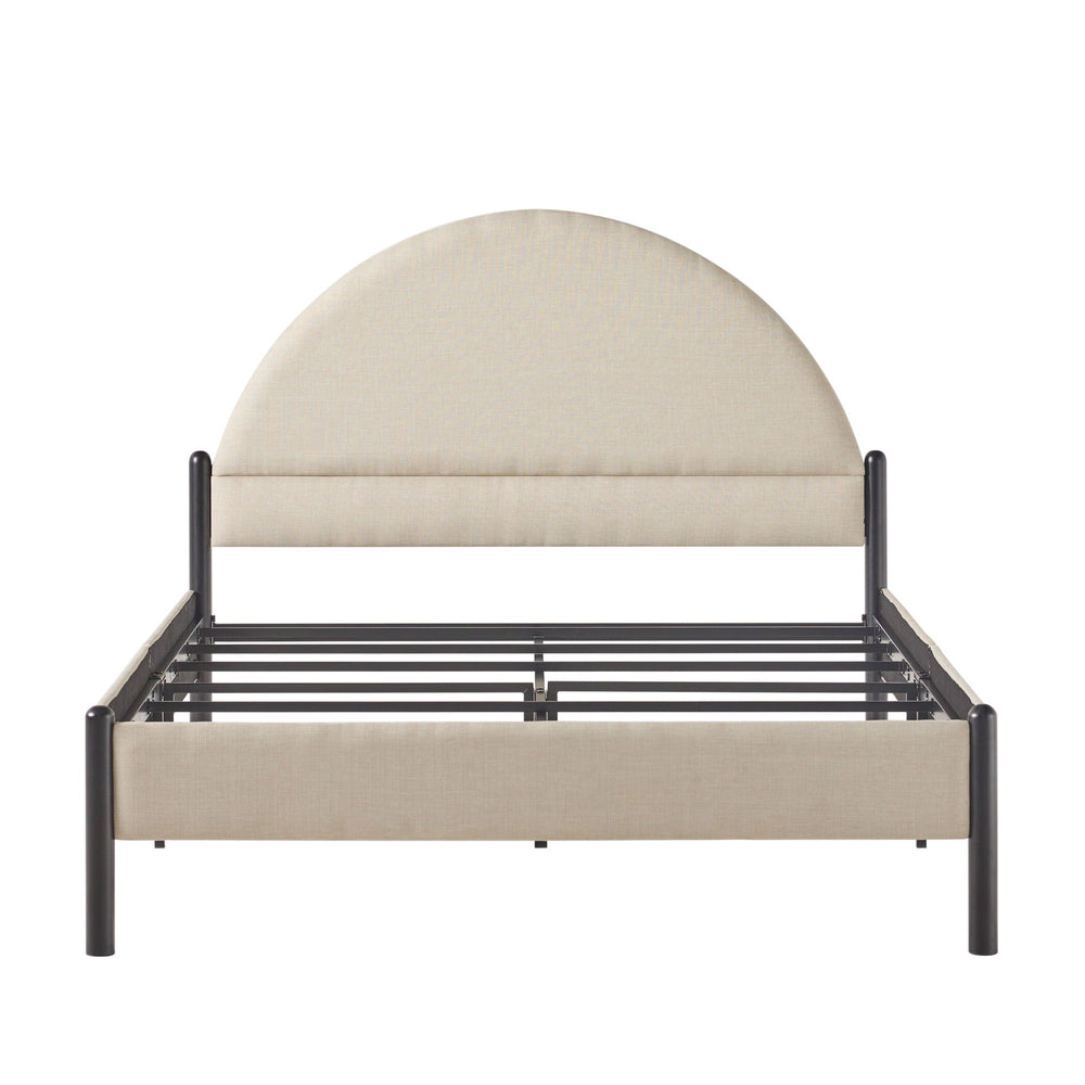 Queen Bed Frame Modern Upholstered Curved Headboard - Oatmeal 83.25"W x 62.0"D x 49.63"H - 90.0 lb