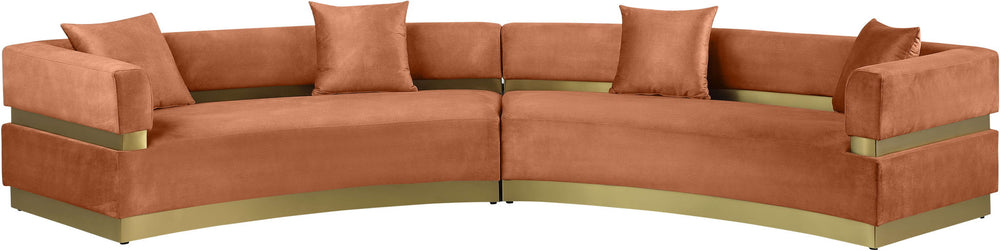 Round up the gang and get comfortable while seated on this Belsa velvet sectional. This uber contemporary sectional couch is just what you need for entertaining and hanging out with the whole gang. Its stunningly luxurious velvet upholstery is sleek to the touch and easy to care for and maintain, so the sofa retains its lovely look longer. Accents of brushed gold stainless steel on the base and back give the sectional a touch of glam.