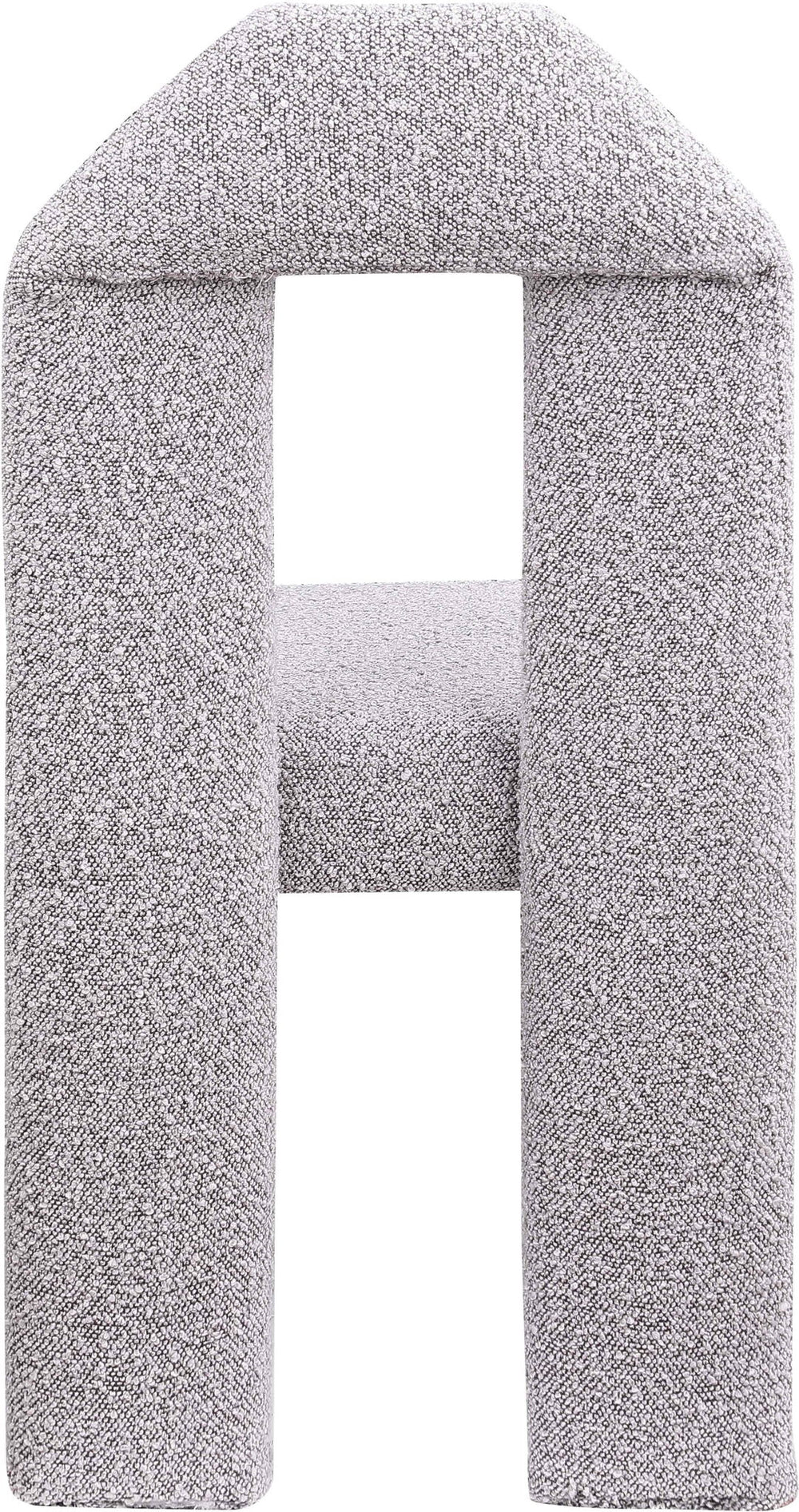 Be an impressive dinner host when you seat your guests in this Bennett taupe boucle fabric dining chair. Its rich taupe boucle fabric, paired with an iron metal inner frame, offers a blend of comfort and contemporary elegance. Featuring a geometrically inspired design, it enhances any dining setting with its stylish presence and ergonomic support, bringing creature comfort to mealtime. Perfect for formal dinners or casual meals, this chair ensures both aesthetics and comfort, making every dining experience memorable and enjoyable.