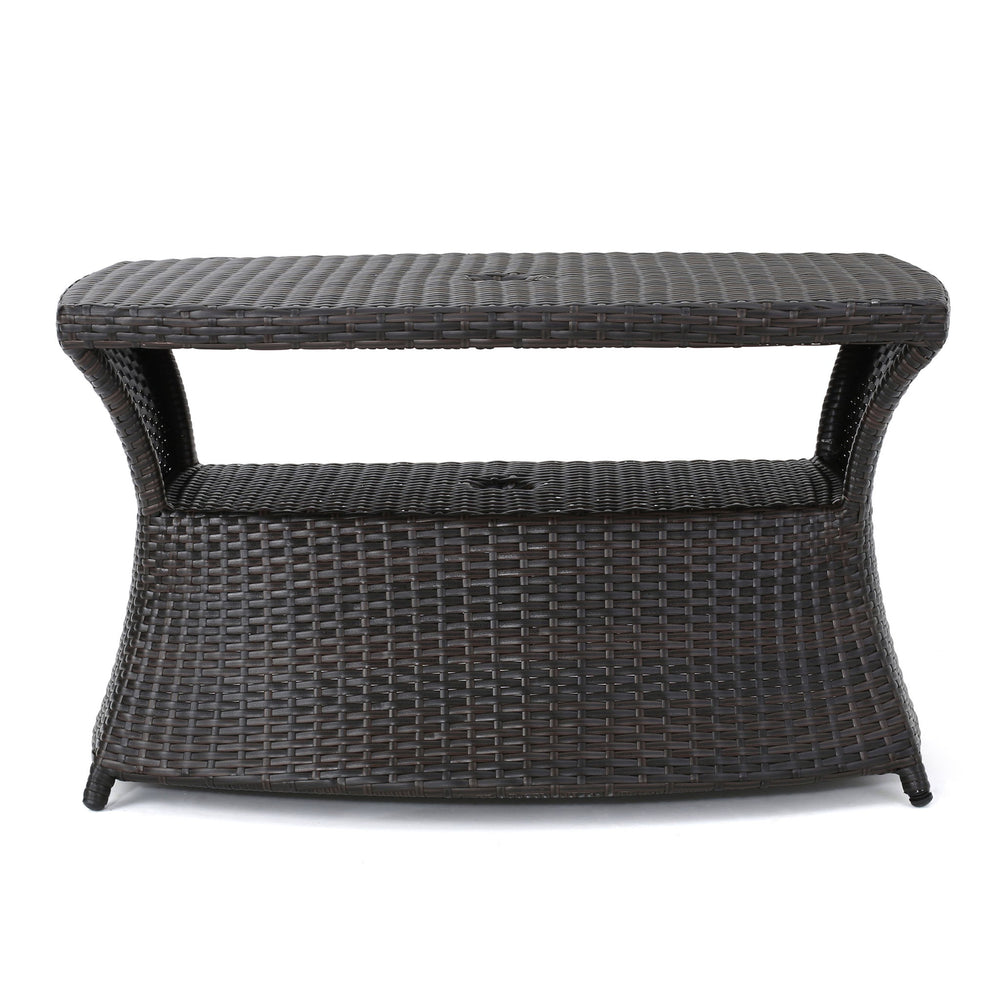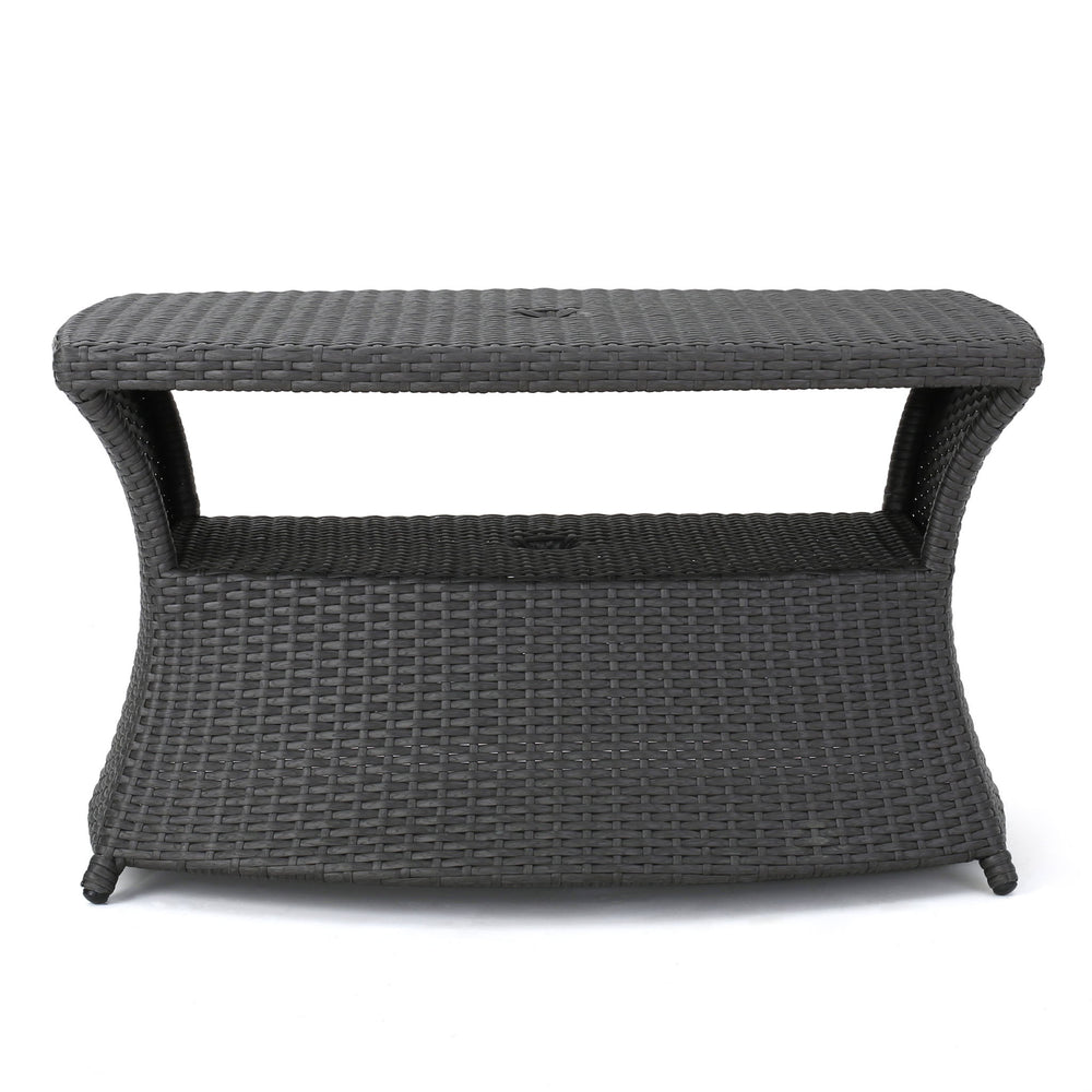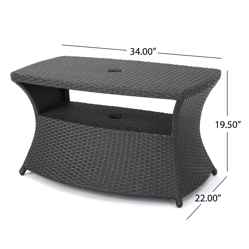 Versatile Design: This stylish outdoor side table is designed to enhance any patio, offering functionality as both a coffee table and a serving table with ample space for plates and small dishes.