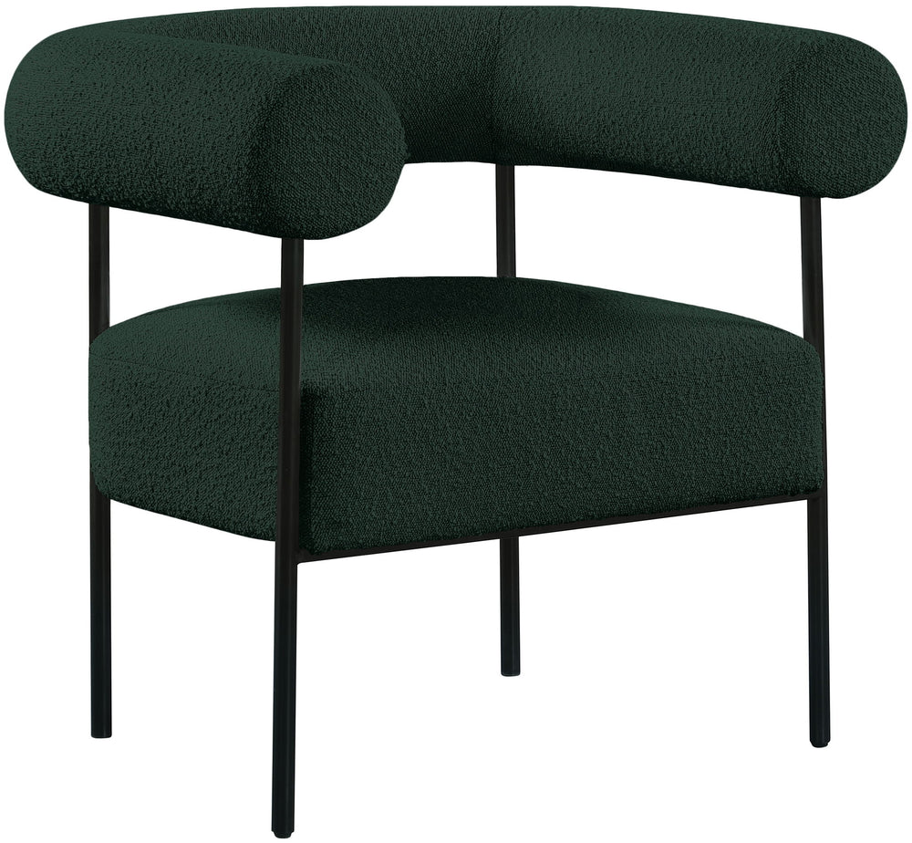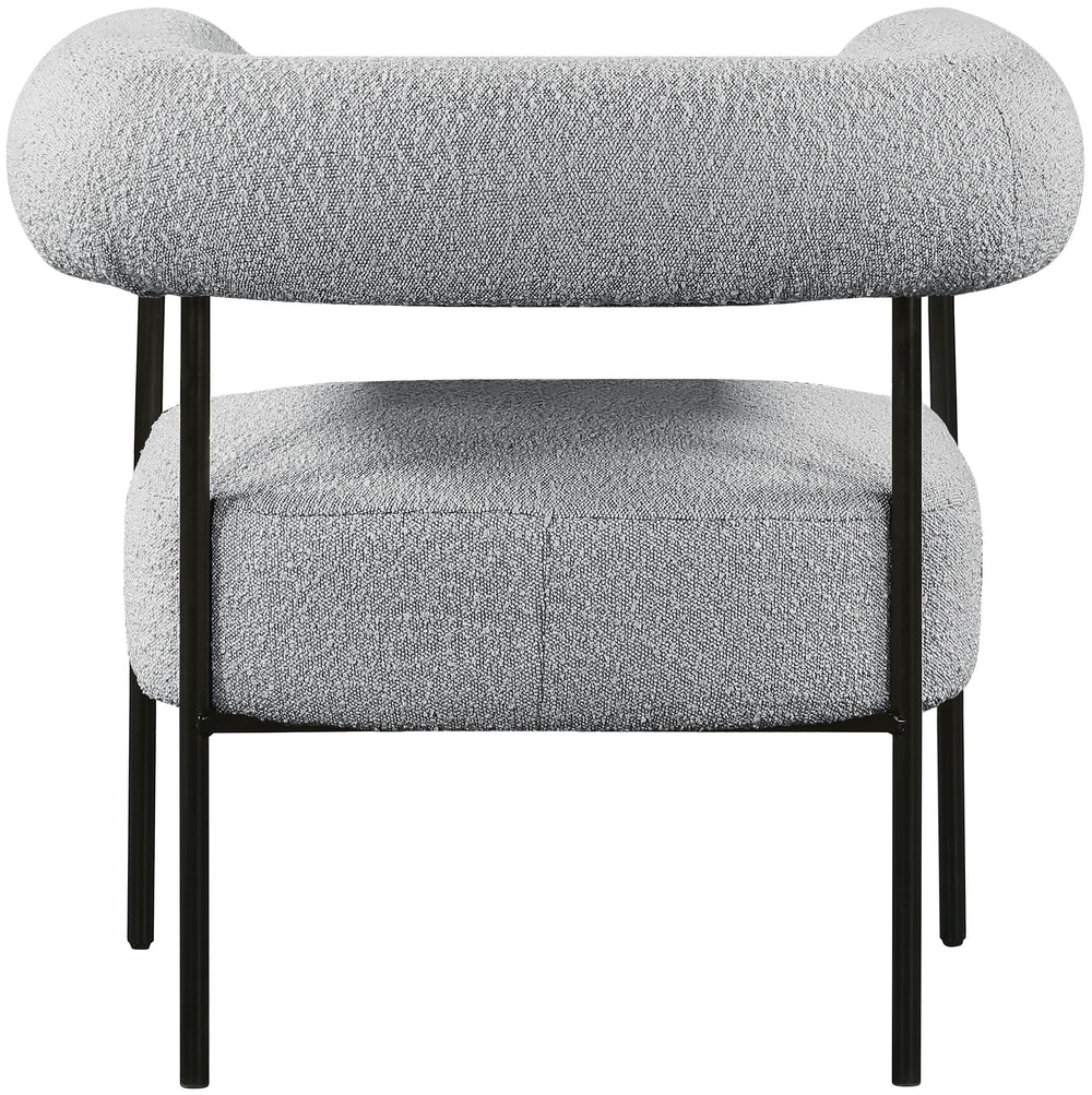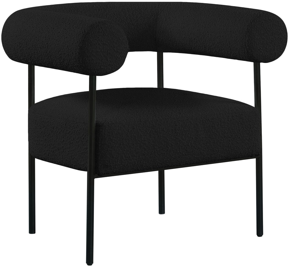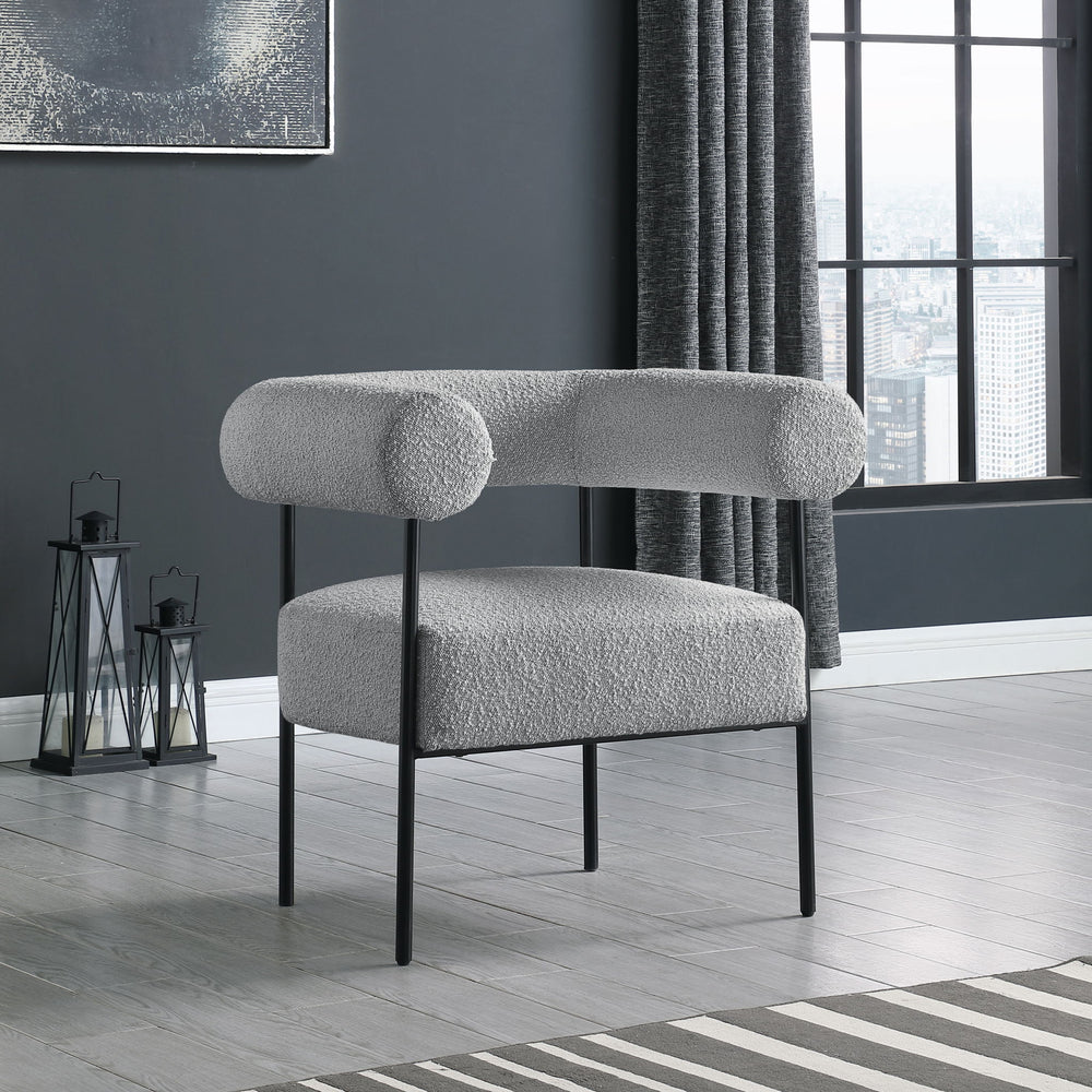 Modernize your home with this Blake accent chair. Featuring rich boucle fabric and a matte metal frame, its contemporary design is sure to catch the eye of all your house guests. Crafted from a mixture of iron and foam, this accent chair is sturdy enough to seat just about anyone. Its curved back provides a comfortable resting place for your spine, and its thick foam cushion gives you a plush place to sit.