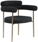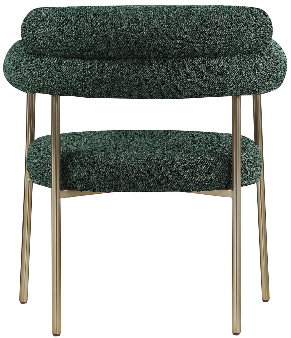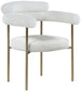 Comfort comes to mealtime with this Blake boucle fabric dining chair. This lovely chair is just the right choice for your modern dining room, with its curved back that cradles you in comfort while you wine and dine the night away. A thickly padded soft boucle fabric seat lends this chair a sleek, upscale look while ensuring its ongoing performance and beauty. The chair's brushed brass finish protects its all-metal iron frame.